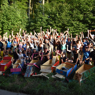 Am Abendessen standen dann sieben vollfunktionsfähige "Seifenkisten" in der Garage, welche nur darauf warteten, getestet zu werden. Am Abend war es endlich so weit. Welches Team hat die besten Ingenieursköpfe. Stabilität, Aerodynamik, Lenkverhalten, alles musste passen. Die sieben Teams leisteten sich ein Kopf an Kopf Rennen und ihre Fahrzeuge schossen nur so über die raue Oberfläche des Planeten. Alle, schon bald Weltraumexperten, kehrten anschliessend (unversehrt) zurück in ihre Log-Basis und waren froh, nach diesem strengen, dramatischen Donnerstag ins Bett zu gehen und freuten sich schon auf den, jedes Jahr spektakulären, Fussballmatch-Freitag.